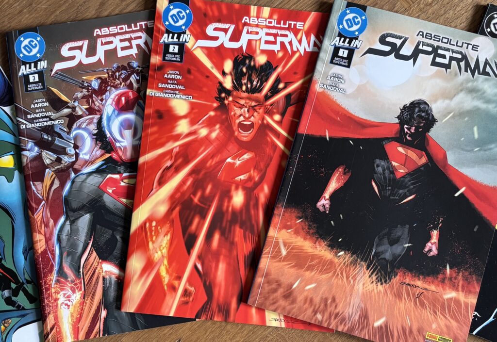 Als ich die ersten Seiten von Absolute Superman (von Jason Aaron und Rafa Sandoval, erschienen bei Panini Comics) aufschlug, war mein erster Gedanke: Das ist nicht mein Metropolis. Und genau das ist das Beste daran. In der traditionellen Erzählung ist Superman das ultimative „Kind des Privilegs“ – er wurde von den liebevollen Kents in einem idyllischen Kansas aufgezogen und hatte moralische Leitplanken. In der Absolute-Timeline ist alles anders: