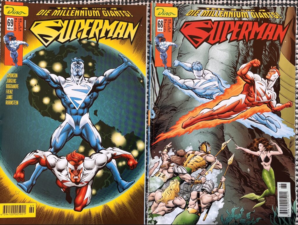 Wenn wir über radikale Veränderungen sprechen, muss ich eine Ära erwähnen, die mich damals völlig aus der Fassung gebracht hat: Die Zeit nach „Final Night“ (1996) und was aus meinem geliebten Kryptonier wurde. Erinnern wir uns kurz: Die Sonne erlosch durch den Sun-Eater, die Erde fror ein, und Superman verlor im Kampf seine Kräfte komplett. Doch anstatt einfach irgendwann wieder der Alte zu werden, mutierte Clark Kent zu einem Wesen aus reiner Energie. Er trug diesen blau-weißen „Containment Suit“, konnte sich durch Telefonleitungen teleportieren und Blitze verschießen. Als er sich dann auch noch in zwei Persönlichkeiten aufspaltete – Superman Blue (der kühle Analytiker) und Superman Red (der hitzköpfige Kämpfer) – dachten viele: „Das war’s, der klassische Superman kommt nie wieder.“