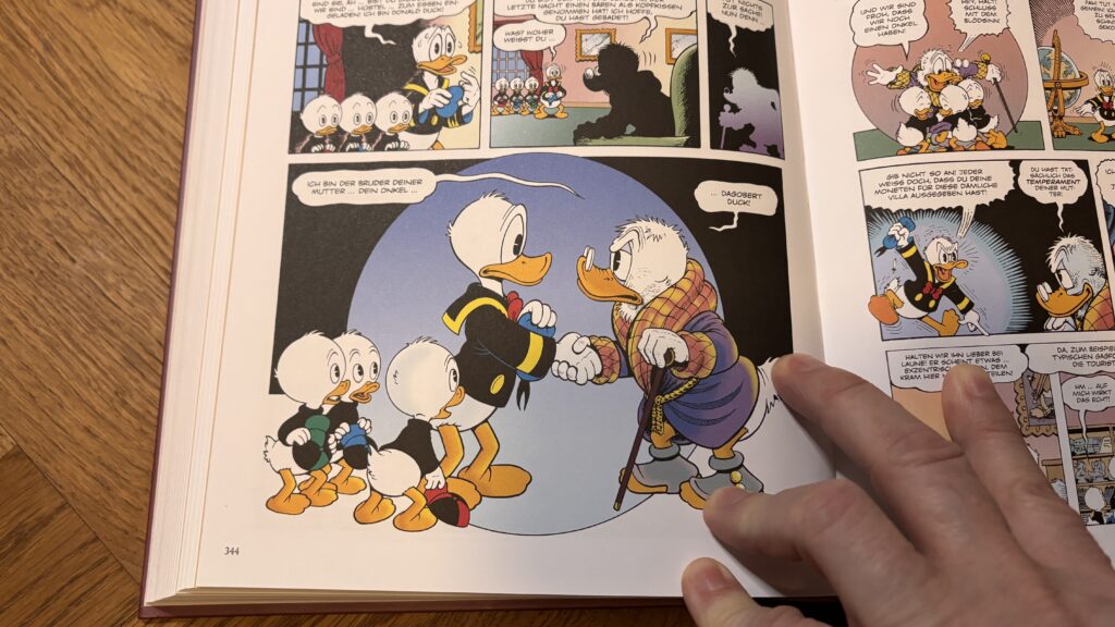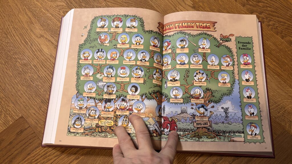 Falls ihr danach noch nicht genug von der Familie Duck habt und mal sehen wollt, wie das Ganze beim ewigen Pechvogel der Sippe aussieht: Gerd hat einen ganz ähnlichen, fantastischen Blick auf Donald geworfen. Schaut unbedingt mal in die „Disney Comics Library. Carl Barks’s Donald Duck. Vol. 1. 1942–1950“. Es ist die perfekte Ergänzung, um zu verstehen, wie das Fundament dieser Welt gelegt wurde.